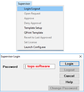 3. At the Supervisor Login dialog box, enter the supervisor’s password. (The default password is “tops software” case insensitive)