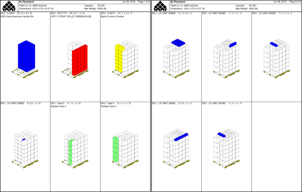 Another report we offer is the “Load By Stop Off” report: this is useful to help drivers oversee the unloading at each destination. It provides graphical illustrations and listings of each SKU quantity per stop of the shipment.