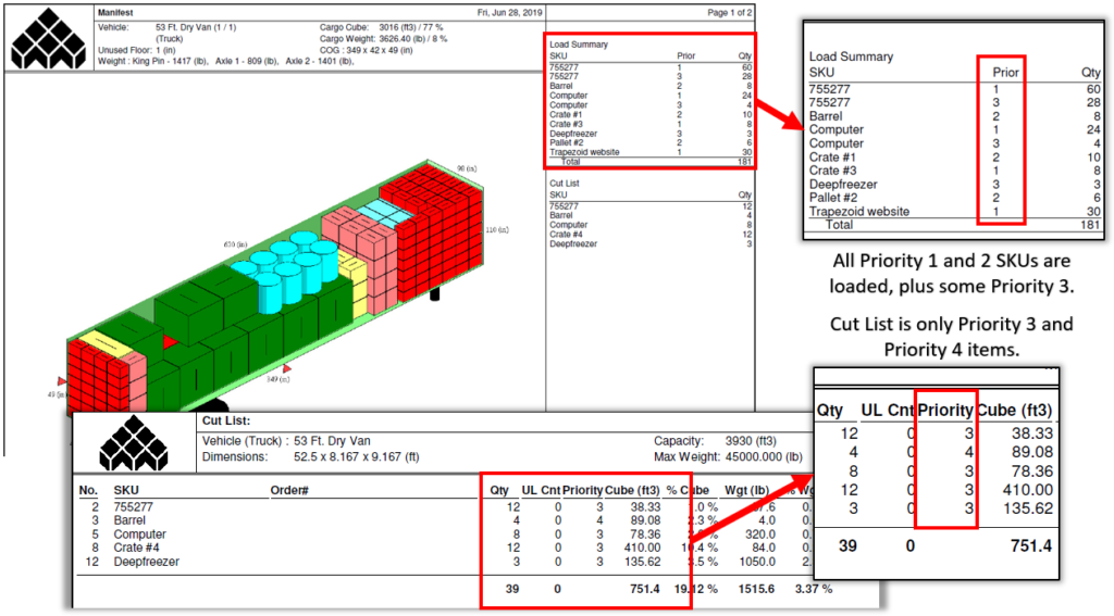 When planning a truck/container load, every company uses some sort of loading factor threshold to estimate when a shipment should be cut off. A few of the most common load factor examples are: raw cubic volume, total weight, and product value. The problem with these arbitrary load factors is they do not accommodate operational restrictions or opportunities such as weight distribution, stacking restrictions, or stop off segregations, causing them to be inaccurate.