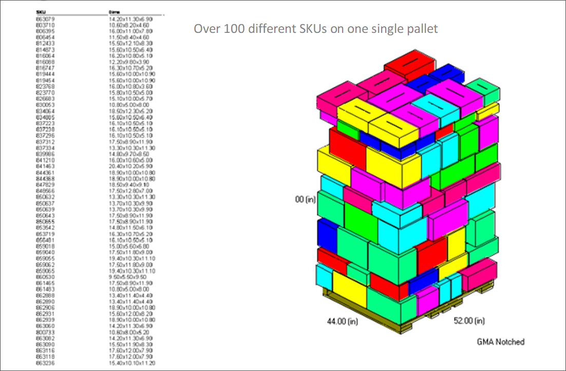 Load SKUs as floor loads, uniform pallets or in mixed pallets with other SKUs.